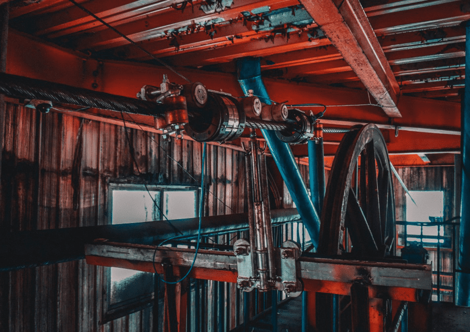 随后猫咪视频官网APP爬上100多米高副井提升机天轮机房